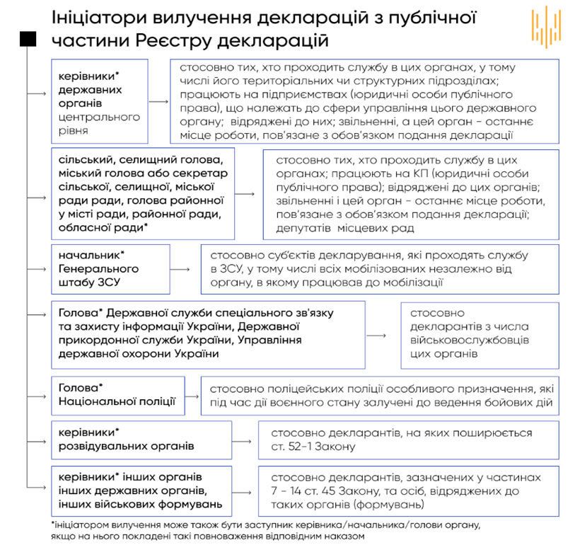 Ініціатором вилучення декларацій з публічної частини Реєстру декларацій є: